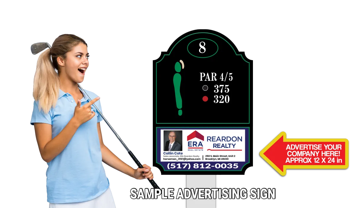 Brand Recognition: Advertising your company on a tee sign at a golf course increasing your company's brand recognition right in your backyard at a low investment.